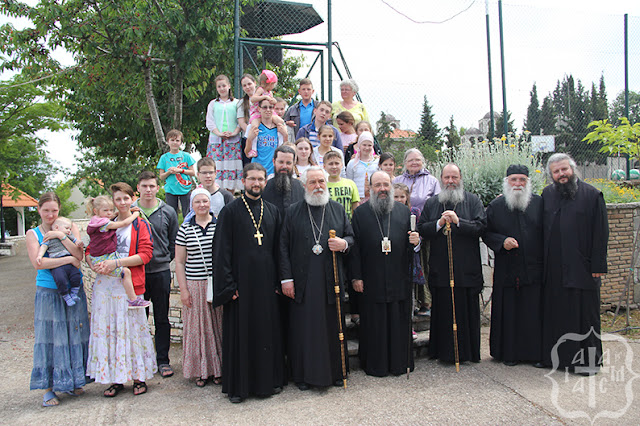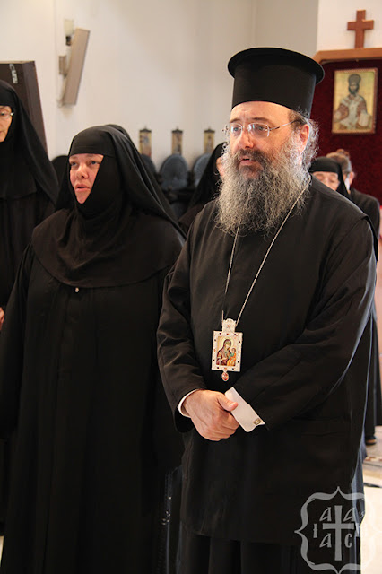 Οι καμπάνες του μεγάλου καμπαναριού της Μονής ήχησαν χαρμόσυνα την ώρα της αφίξεως των Αρχιερέων, τους οποίους ο Σεβασμιώτατος Φωκίδος μετά του Καθηγουμένου οδήγησαν στο Καθολικό της Μονής για να προσκυνήσουν τους Αγίους Αυγουστίνο Επίσκοπο Ιππώνος και Σεραφείμ του Σαρώφ, που είναι αφιερωμένο το Μοναστήρι.
