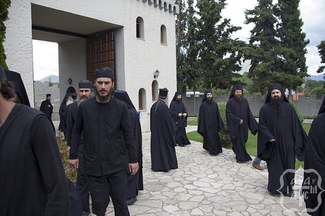 Αμέσως μετά στο συνοδικό της Μονής προσφέρθηκε το μοναστηριακό κέρασμα και ο Σεβασμιώτατος Φωκίδος, ξενάγησε στους εσωτερικούς και εξωτερικούς χώρους της Ιεράς Μονής τους Αρχιερείς καθώς και στους χώρους των χριστιανικών κατασκηνώσεων της Ιεράς Μητροπόλεως Φωκίδος. Το μεσημέρι συνέφαγαν όλοι μαζί στην μοναστηριακή τράπεζα.